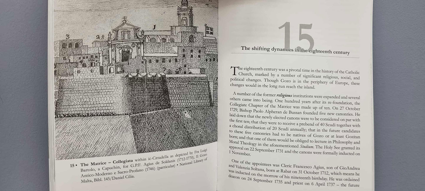 “A History of the Church in Gozo” ta’ Joseph Bezzina jippreżenta rendikont estensiv tal-wirt Kristjan tal-gżira billi jittraċċa l-iżvilupp tiegħu minn santwarji preistoriċi u Klassiċi sal-perjodi Biżantini u medjevali sa żminijiet moderni. Il-ktieb jinkludi bijografiji konċiżi tad-disa’ isqfijiet li servew mill-ħolqien tad-djoċesi fl-1864, informazzjoni dettaljata dwar il-ħmistax-il parroċċa ta’ Għawdex, u dokumentazzjoni ta’ bosta avvenimenti reliġjużi li rarament ġew irreġistrati x’imkien ieħor.
